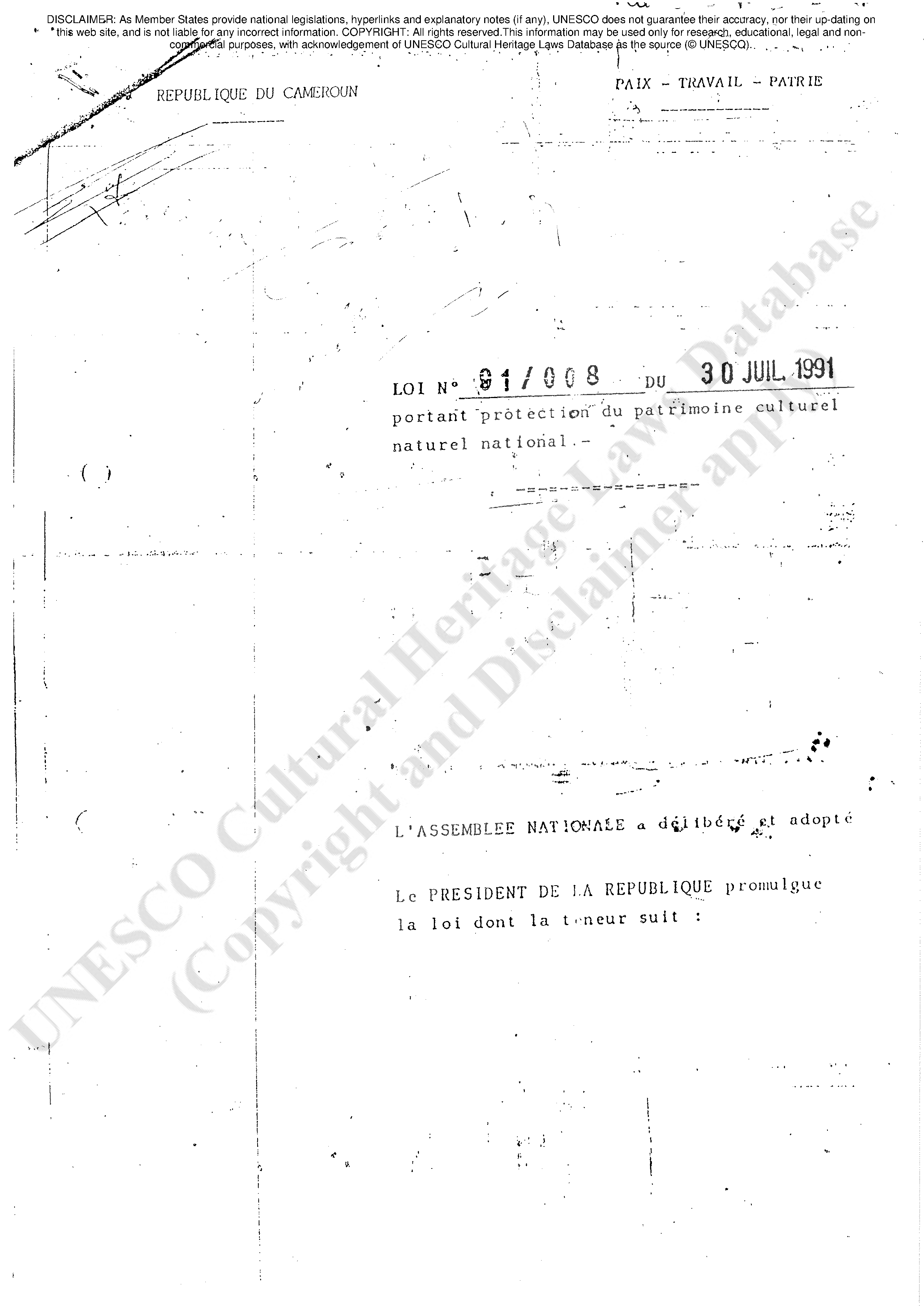 Loi N° 01/008 Du 30 Juillet 1991 Portant Protection Du... (1991)