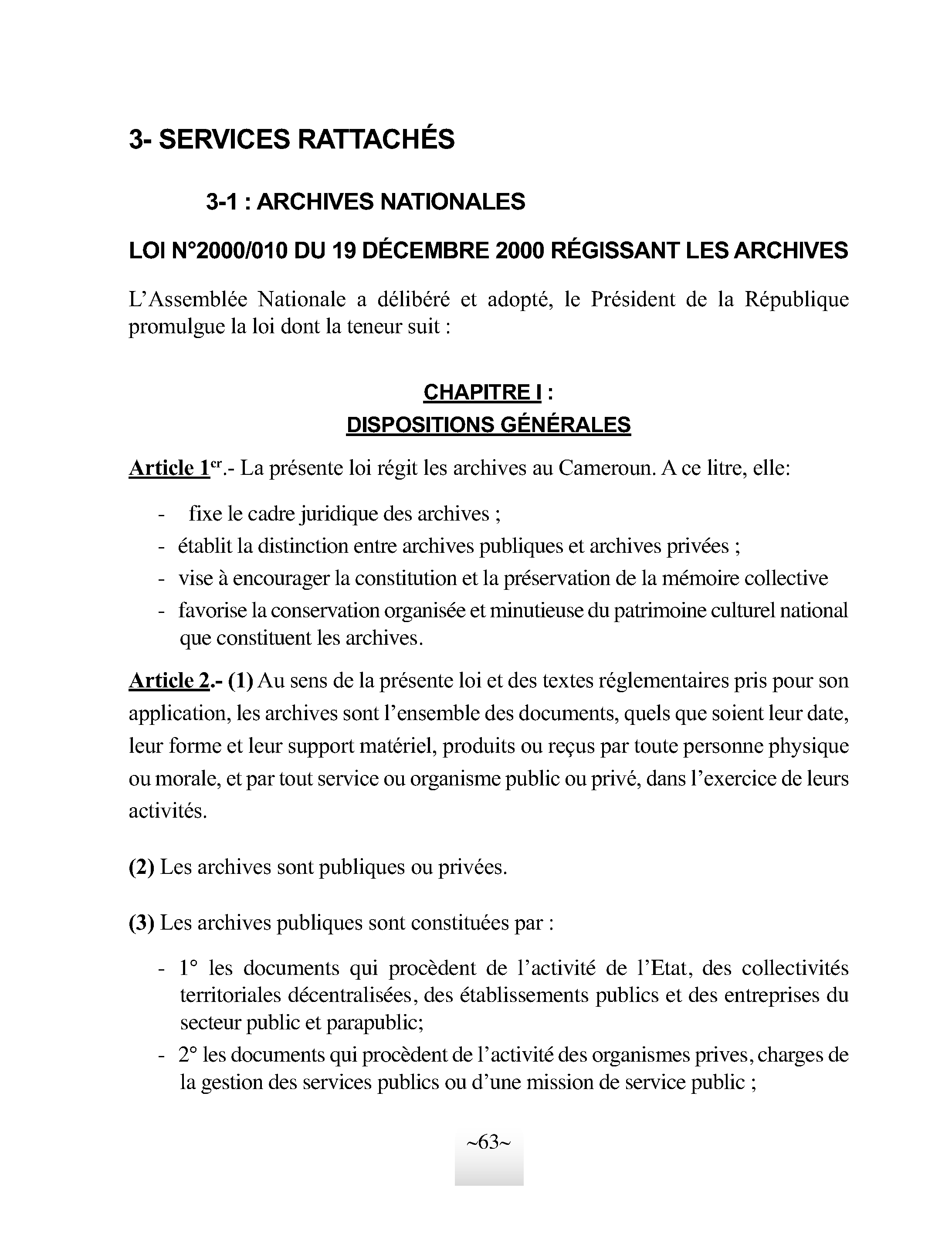Loi N°2000/010 Du 19 Décembre 2000 Régissant Les Archives (2000)