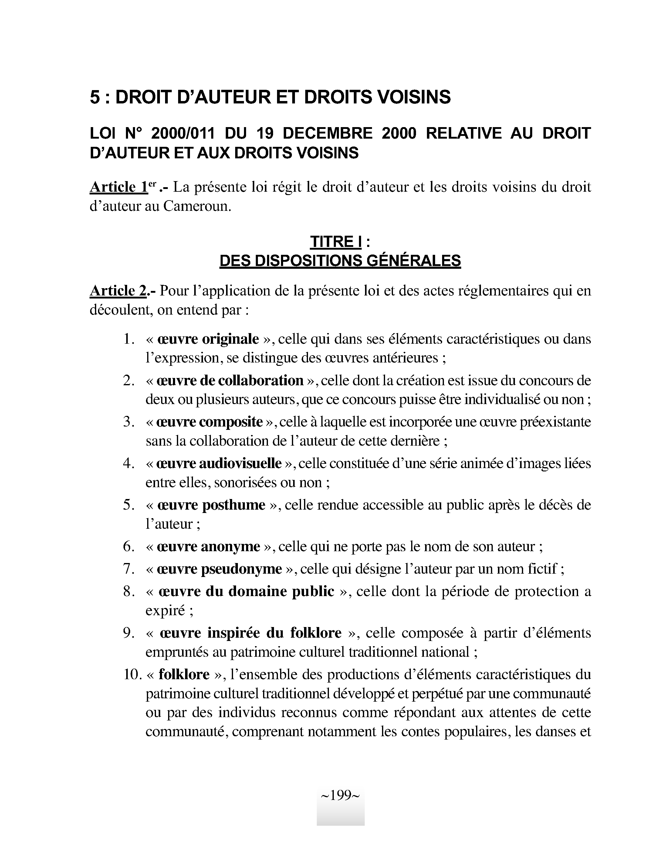 Vu la loi n° 2000/11 du 19 décembre 2000 relative au droit d’auteur et aux droits voisins ;