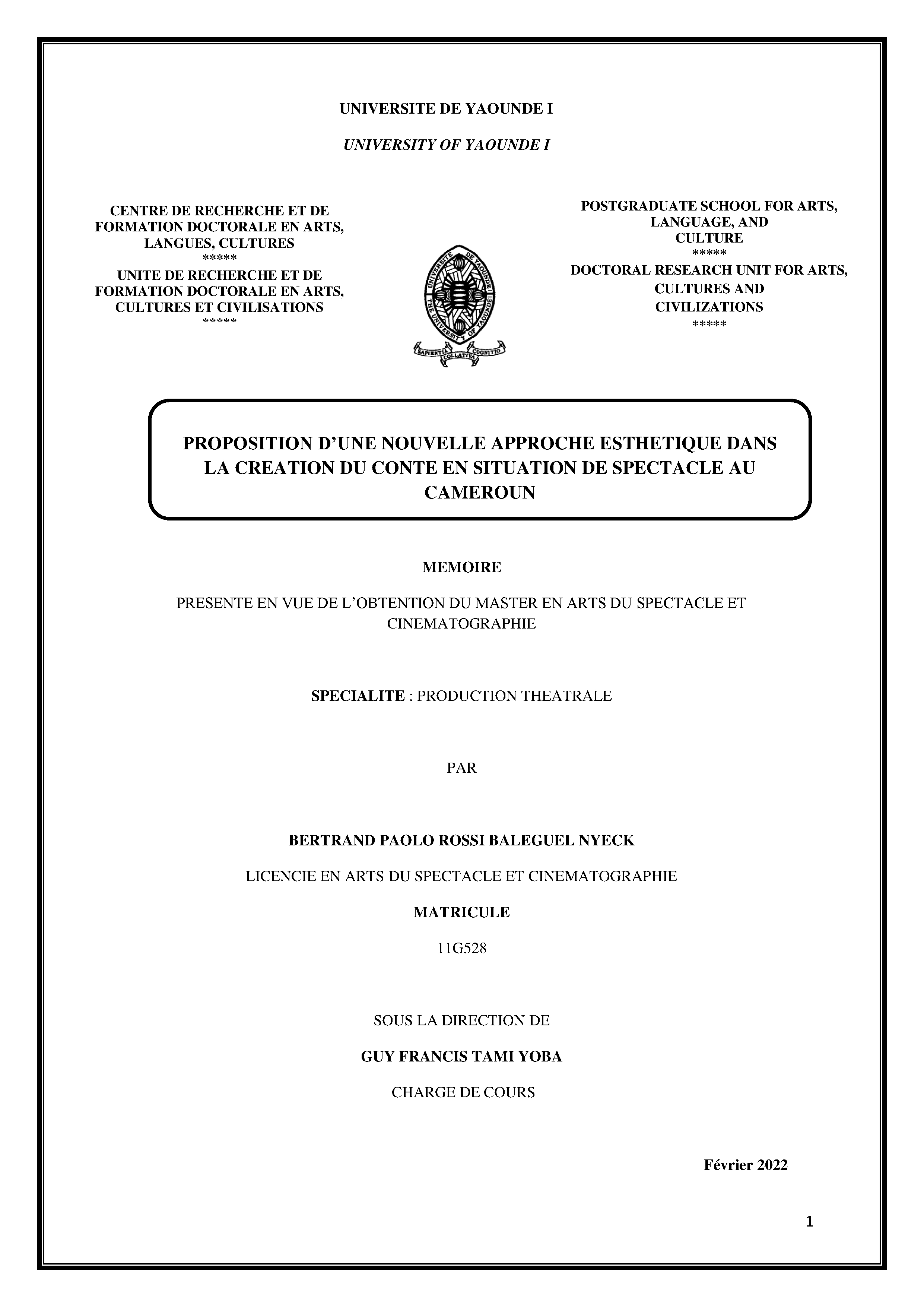 Proposition D’une Nouvelle Approche Esthetique Dans La Creation Du Conte En Situation De Spectacle Au Cameroun (2022)