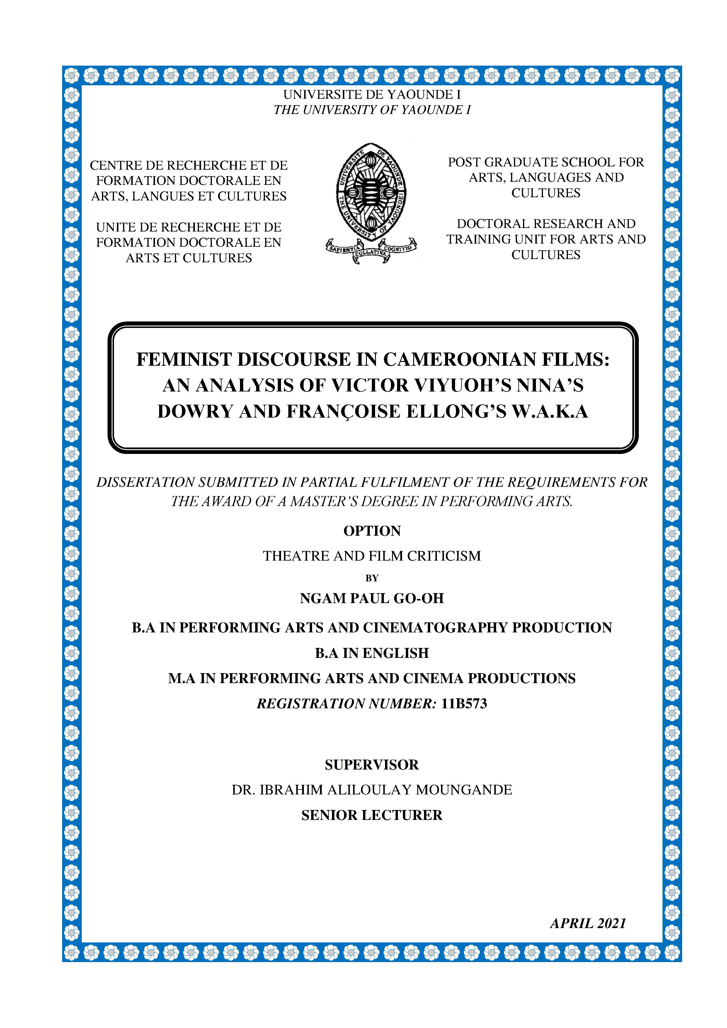 Feminist Discourse In Cameroonian Films : An Analyses Of... (2021)
