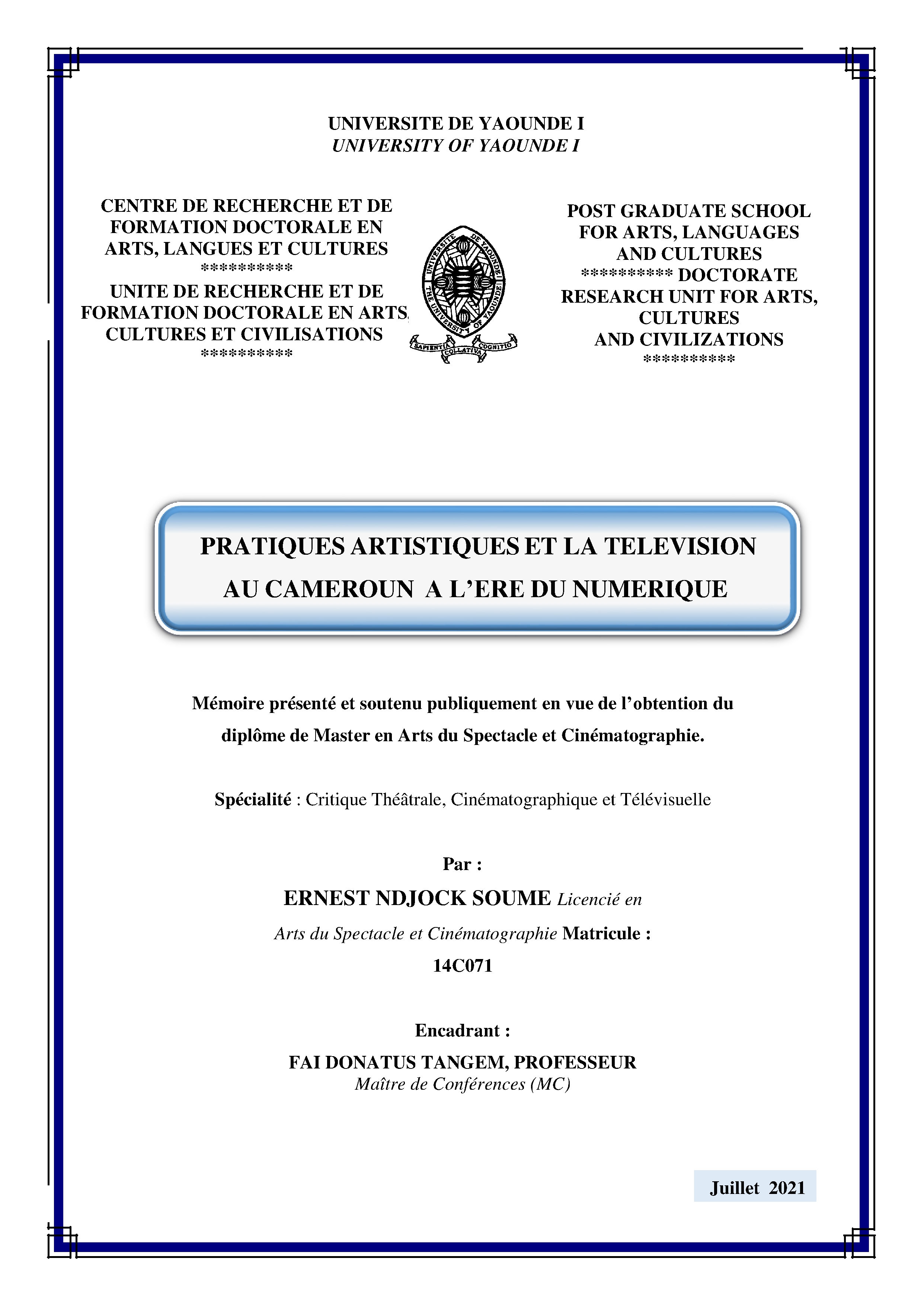 Pratiques Artistiques Et La Télévision Au Cameroun À... (2021)