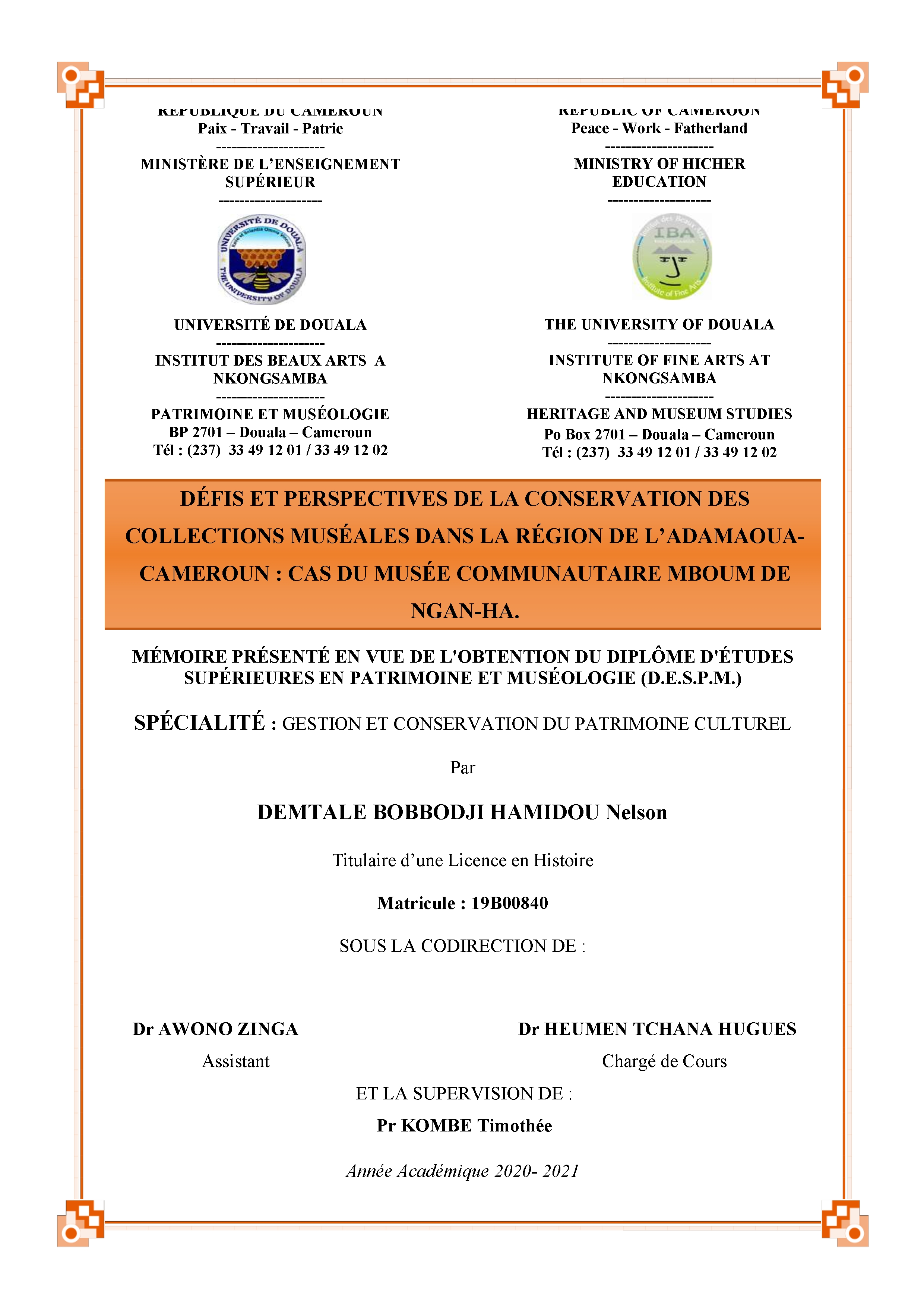 Défis Et Perspectives De La Conservation Des Collections Muséales Dans La Région De L’adamaoua- Cameroun : Cas Du Musée Communautaire Mboum De Ngan-Ha (2021)