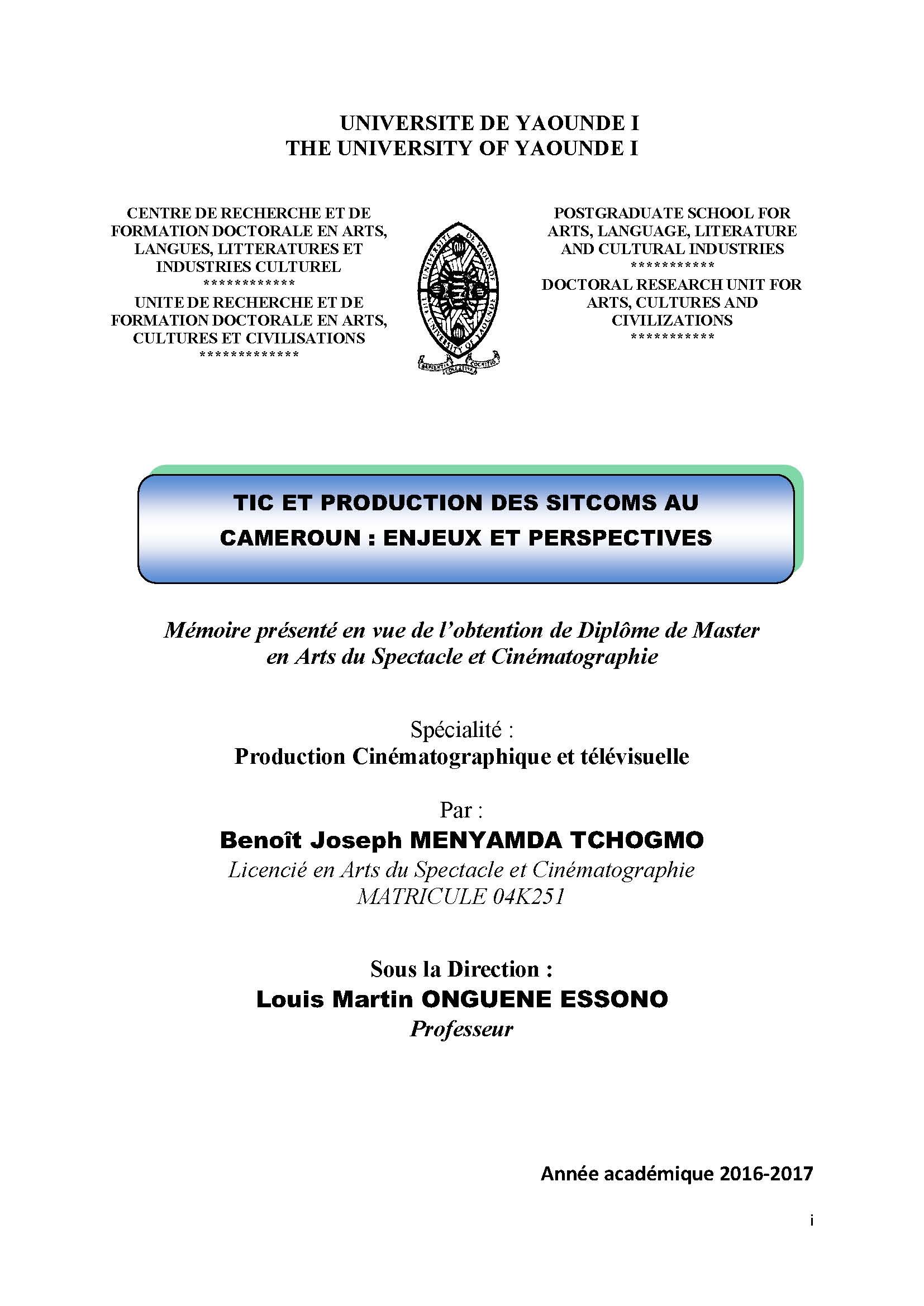 Tic Et Production Des Sitcoms Au Cameroun : Enjeux Et... (2019)