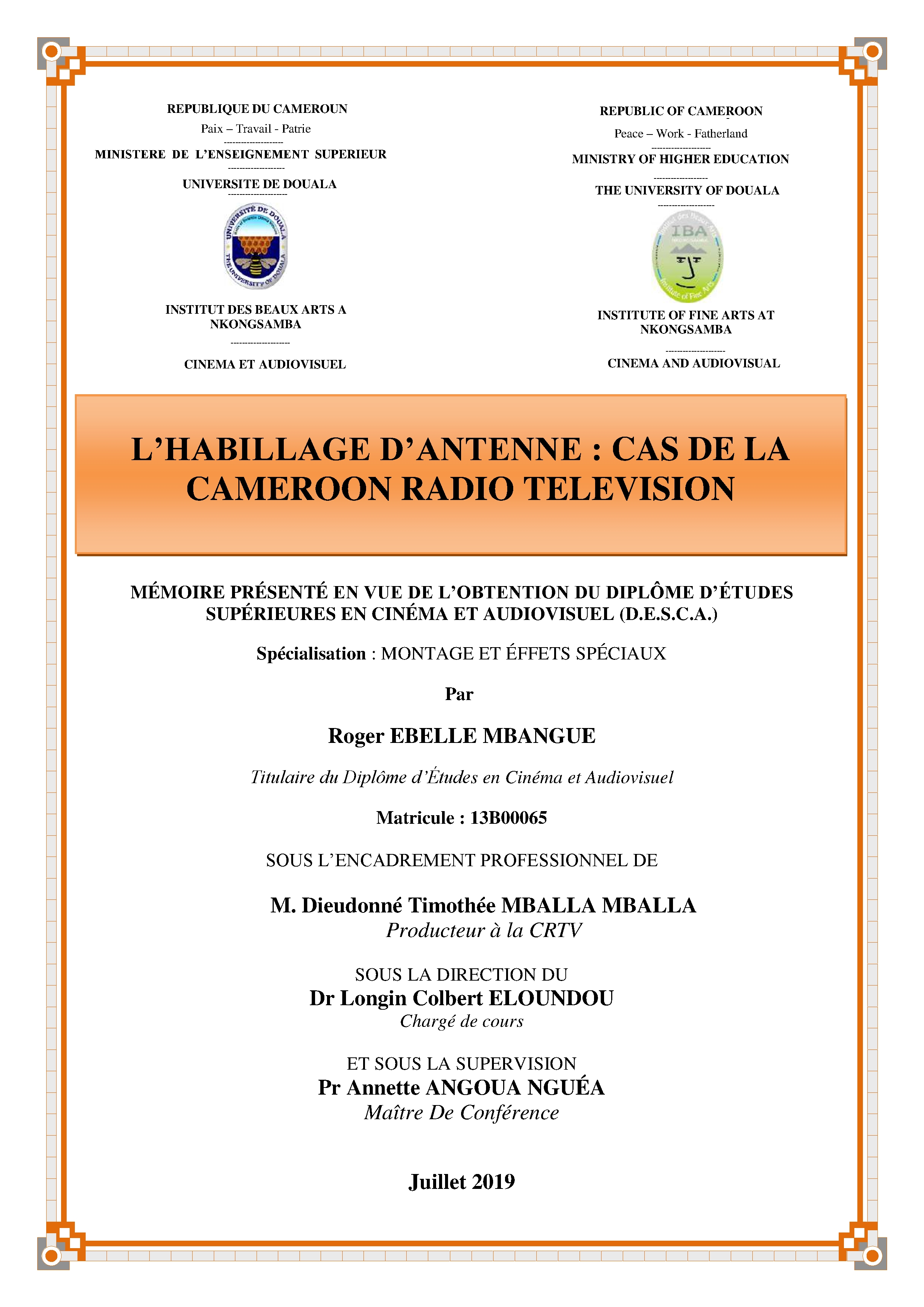 L’habillage D’antenne : Cas De La Cameroon Radio Television (2019)