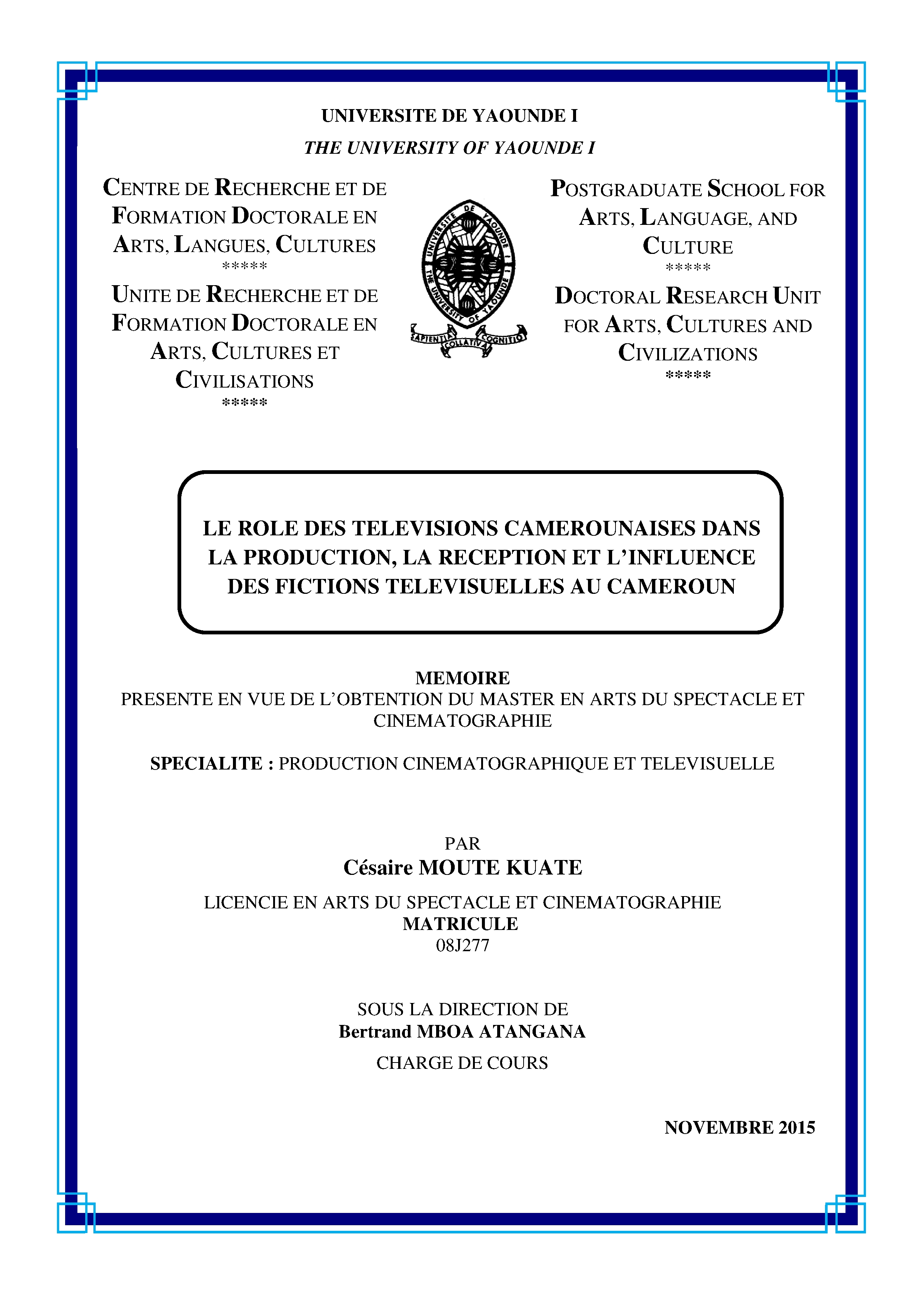 Le Rôle Des Télévisions Camerounaises Dans La Production Et La Réception Des Fictions Télévisuelles Au Cameroun Depuis 1985 (2017)