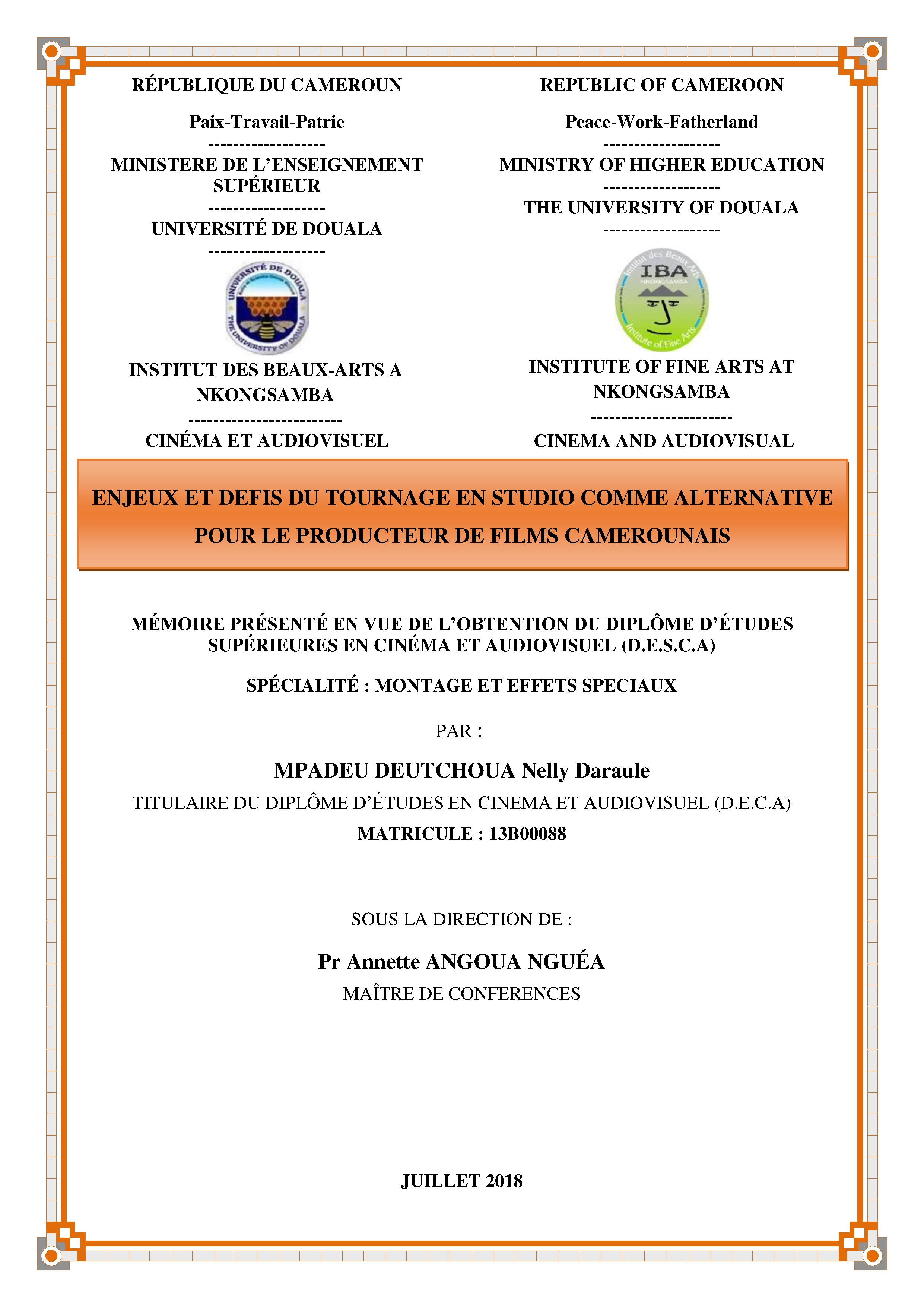 Enjeux Et Défis Du Tournage En Studio Comme Alternative Pour Le Producteur De Films Camerounais (2018)