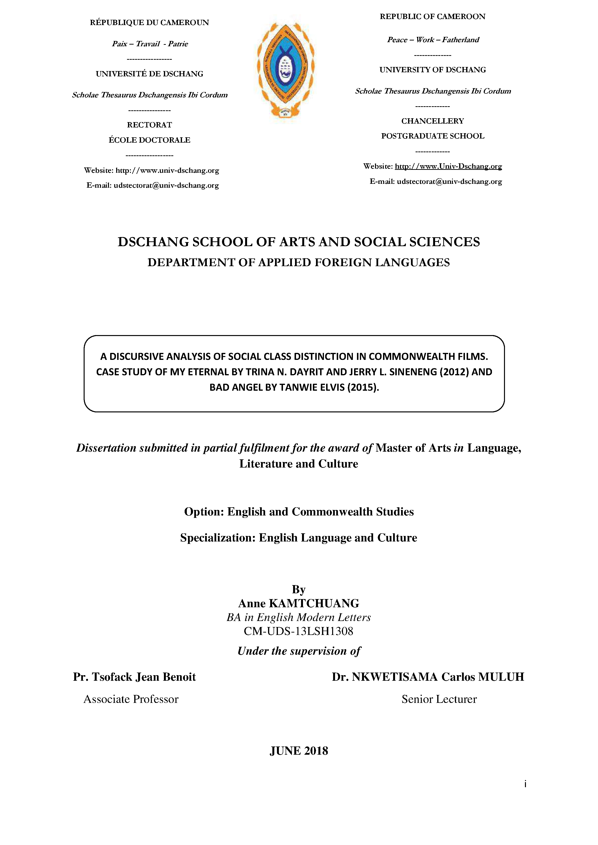 A Discursive Analysis Of Social Class Distinction In Commonwealth Films. Case Study Of My Eternal By Trina N. Dayrit And Jerry L. Sineneng (2012) And Bad Angel By Tanwie Elvis (2015) (2018)