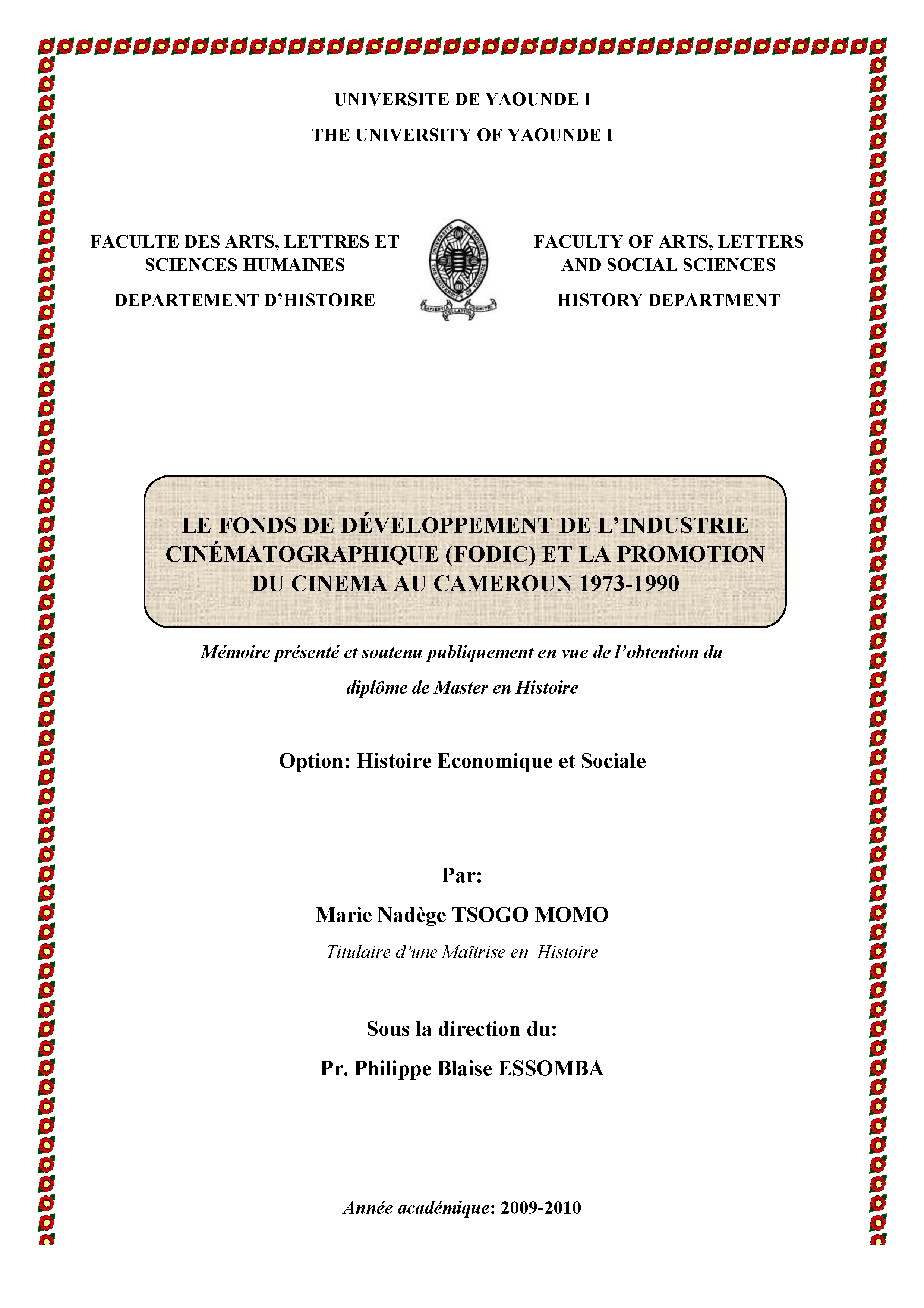 Le Fonds De Développement De L’industrie Cinématographique (Fodic 1973-1990) Et La Promotion Du Cinéma Camerounais. (2010)